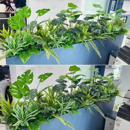 ATZ DECOR thi công bồn cây giả trọn gói cho văn phòng tại Long Biên – Hà Nội. Với sự kết hợp hài hòa nhiều loại cây giả khác nhau, bồn cây mang đến nét vẻ đẹp thẩm mỹ cao, tô điểm thêm nét xanh tươi cho không gian làm việc. Đặc biệt, cây giả phù hợp với môi trường điều hòa của văn phòng và không tốn thời gian chăm sóc như cây thật.