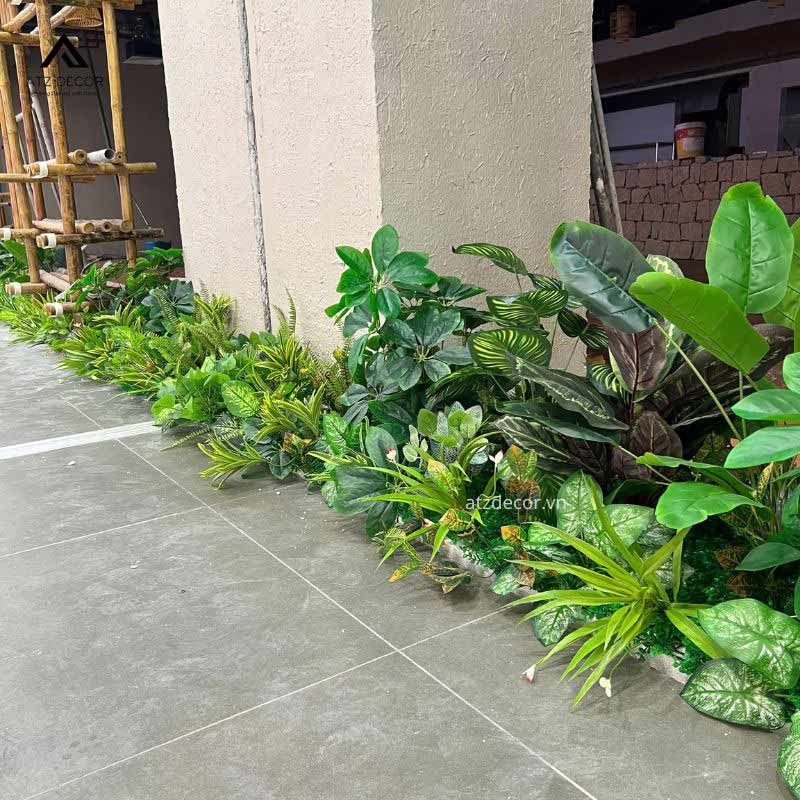 Sự kết hợp của nhiều loại cây giả mang đến không gian tươi xanh